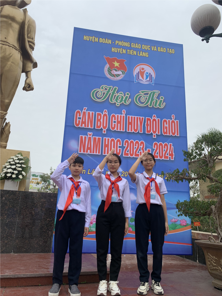 Thực hiện chương trình công tác Đội và phong trào thiếu nhi năm học 2023 - 2024; Ngày 20/3/2024, Liên đội trường THCS Khởi Nghĩa tham gia Hội thi “Chỉ huy Đội giỏi” cấp huyện năm học 2023 – 2024 với 03 đội viên:
