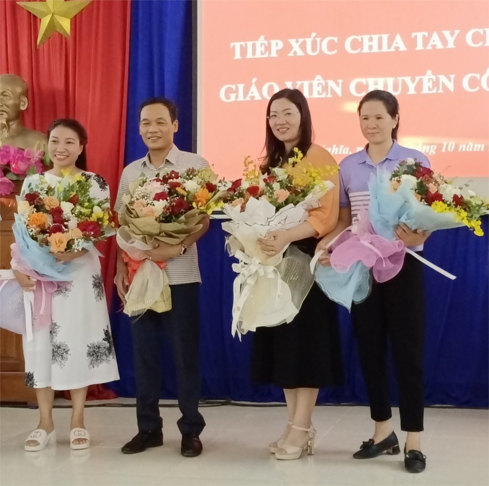 Đồng chí Dương Anh Tuấn - Phó hiệu trưởng tặng hoa chia tay CBQL và GV chuyển công tác