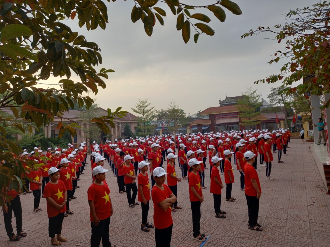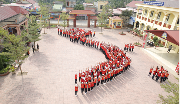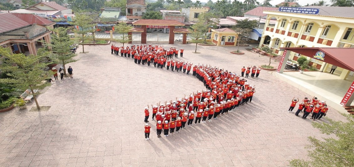 271 học sinh trường THCS Khởi Nghĩa tạo hình khối bản đồ Việt nam