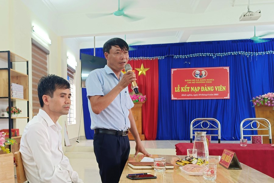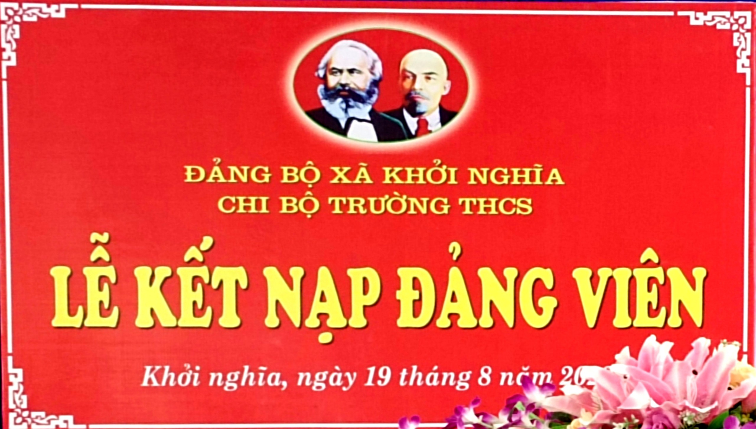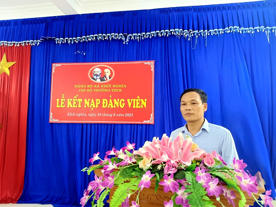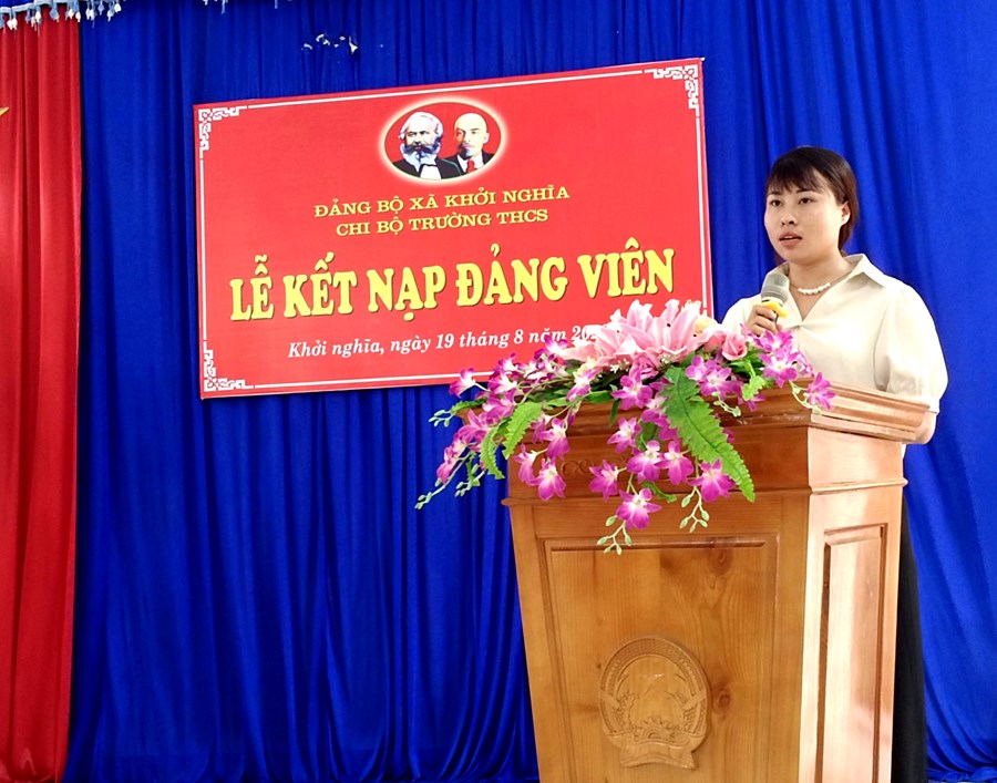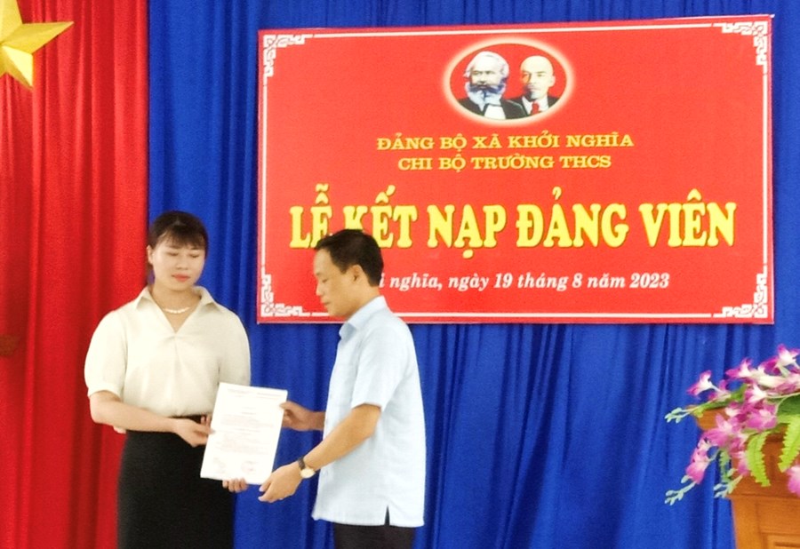 Chiều ngày 19/08/2023, tại Hội trường trường THCS Khởi Nghĩa, Chi bộ trường THCS Khởi Nghĩa tổ chức Lễ kết nạp đảng viên mới cho quần chúng Nguyễn Thị Hoa.