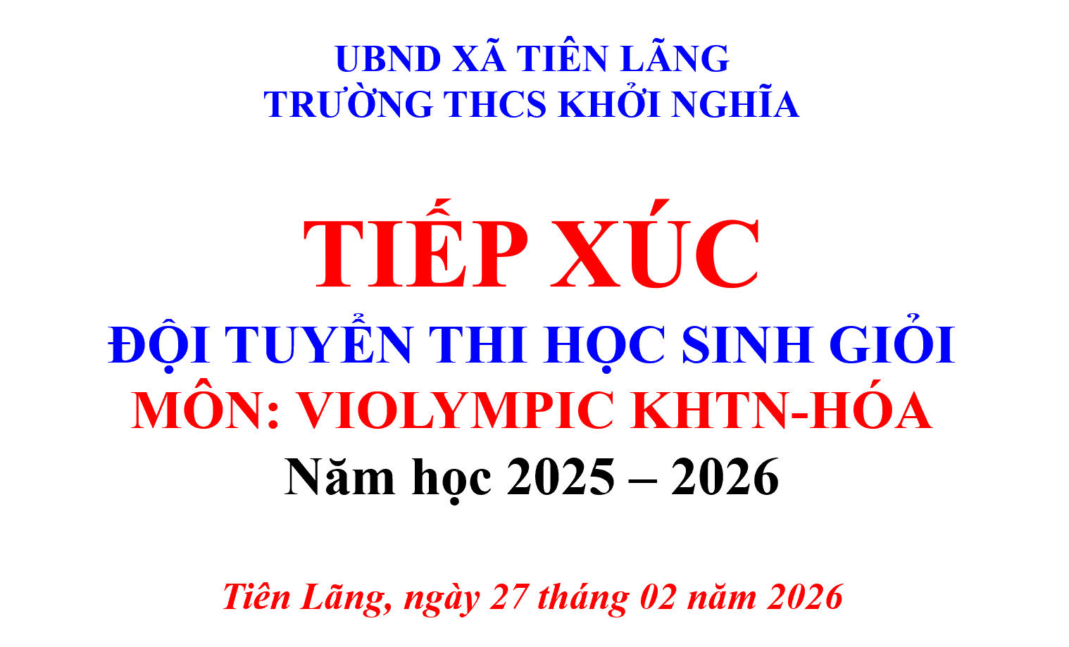 Nhằm kịp thời động viên, khích lệ tinh thần đội tuyển học sinh giỏi trước khi tham dự cuộc thi Violympic KHTN-Hóa học cấp thành phố năm học 2025-2026, Trường THCS Khởi Nghĩa đã tổ chức buổi gặp mặt đội tuyển vào chiều ngày 27/02/2026.
