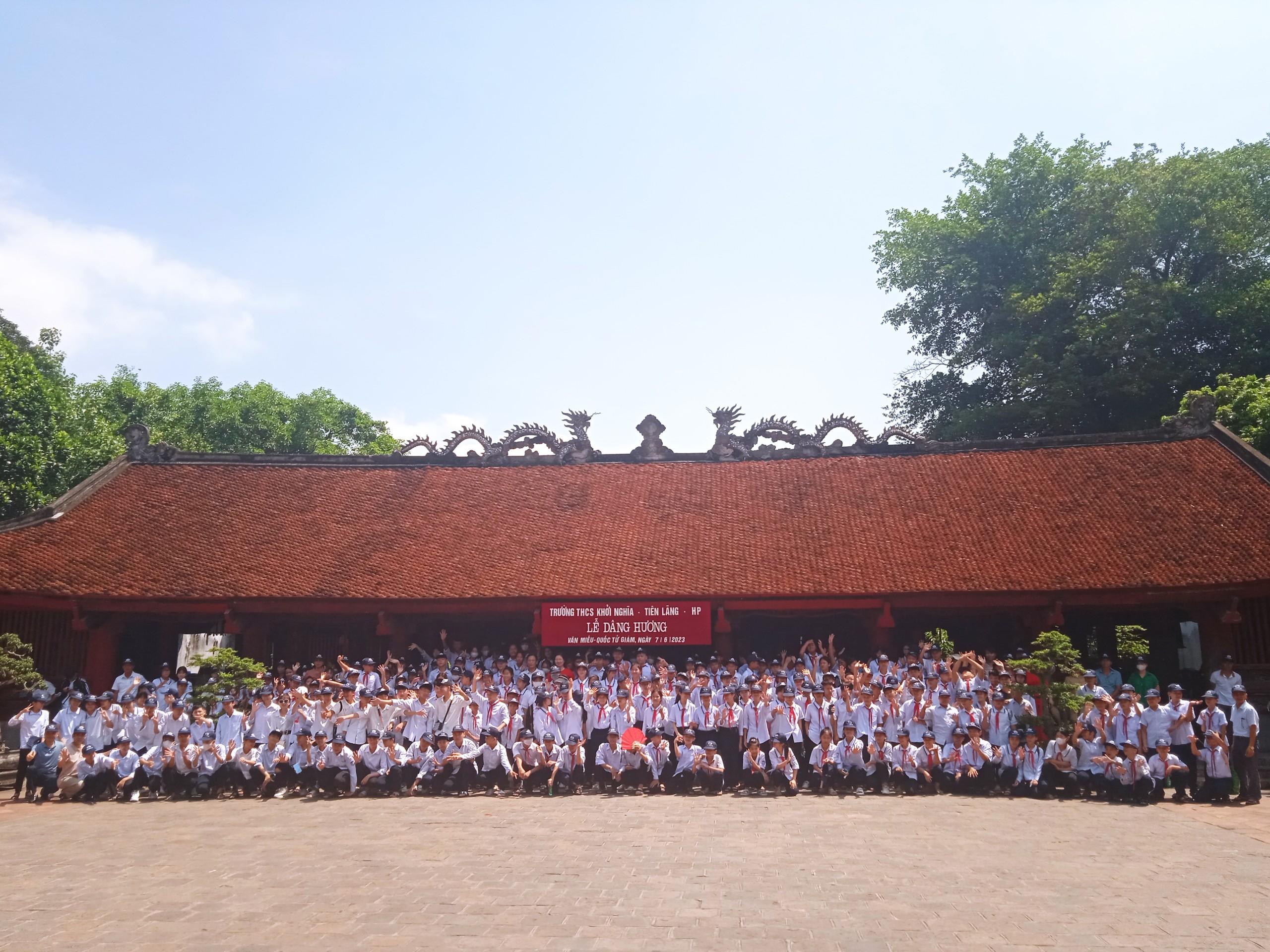 Thực hiện Kế hoạch giáo dục nhà trường, chương trình công tác Đội và phong trào thiếu nhi của Liên đội trường THCS Khởi Nghĩa, sáng ngày 07/06/2023 nhà trường phối hợp cùng công ty giáo dục Nguyễn Kim tổ chức cho 287 học sinh và CB-GV-NV đến tham quan học tập và dâng hương tại Văn miếu Quốc Tử Giám - Hà Nội.