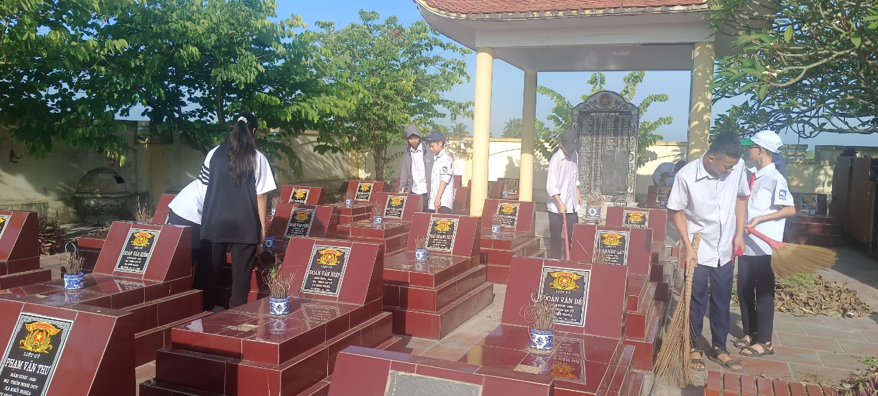 Thực hiện Kế hoạch số 01/KH-UBND ngày 10/07/2025 của UBND xã Tiên Lãng; Nằm trong chuỗi hoạt động chào mừng kỷ niệm 78 năm ngày Thương binh, liệt sĩ (27/7/1947 - 27/7/2025), sáng ngày 18/07/2025 Liên đội trường THCS Khởi Nghĩa phối hợp cùng đoàn Thanh niên tình nguyện của trường Đại học Hải Phòng ra quân dọn dẹp vệ sinh, chỉnh trang tại Nghĩa trang Liệt sĩ Khởi Nghĩa.