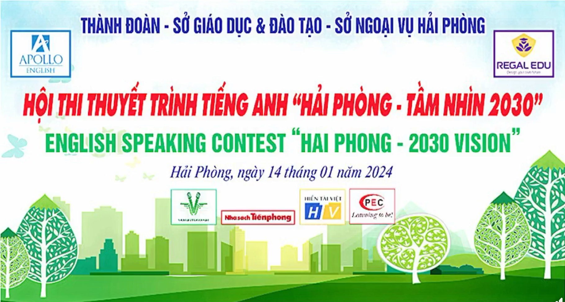 Ngày 14/01/2024 Thành đoàn - Sở GD&ĐT - Sở ngoại vụ phối hợp với Cung Văn hóa thiếu nhi thành phố tổ chức Hội thi thuyết trình tiếng Anh "Hải Phòng - tầm nhìn 2030.