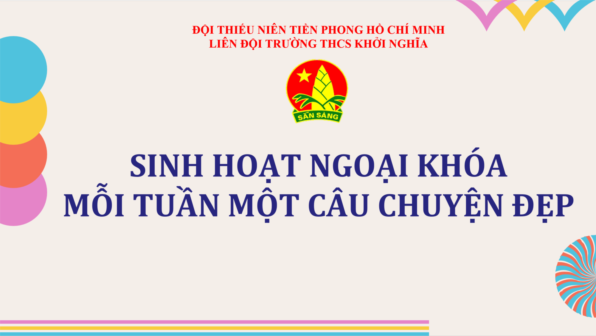 Sáng ngày 08/01/2024, Liên đội trường THCS Khởi Nghĩa tổ chức chào cờ đầu tháng 1/2024 và sinh hoạt ngoại khóa kỉ niệm 74 năm ngày truyền thống học sinh, sinh viên (09/01/1950 - 09/01/2024). Tham dự hoạt động có chị Nguyễn Hà Xuyên - cán bộ Huyện đoàn - Huấn luyện viên cấp I Trung ương, thầy Nguyễn Công Minh - Bí thư chi bộ - Hiệu trưởng nhà trường, các thầy cô giáo trong HĐGD và 340 bạn học sinh của Liên đội.