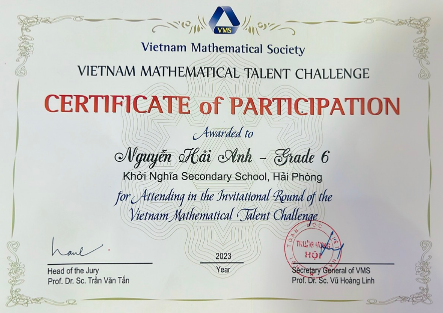 Trường THCS Khởi Nghĩa tham dự vòng sơ khảo tại điểm trường Đại học Hải Phòng với 12 thí sinh ở các khối lớp 6, 7, 9. Đây là một sân chơi toán học giúp khơi dậy niềm đam mê học toán đối với các em học sinh.